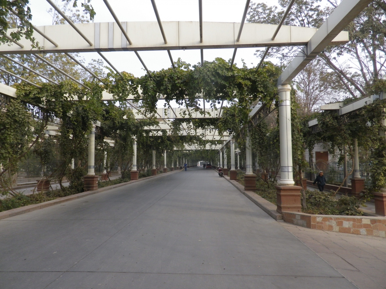吐魯番市街地のほぼ中心にある青年路の道路上に葡萄棚があります、宿泊に利用した吐魯番賓館は丁度道路沿いにありましたので、葡萄棚の下を歩きました。