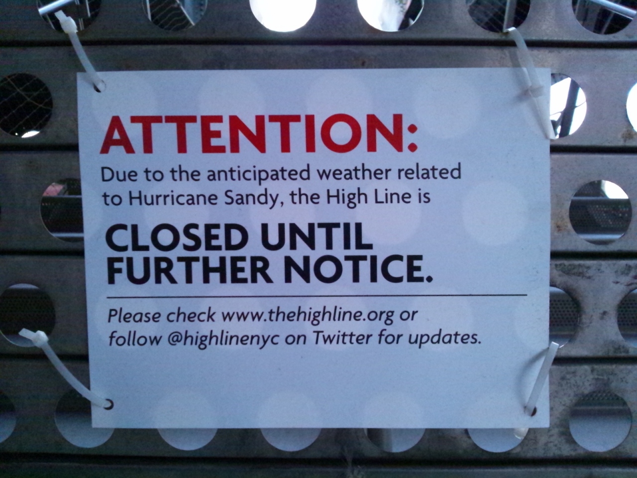 ハイラインは、入口が封鎖されていて、入る事ができませんでした。写真は、そのノーティスです。