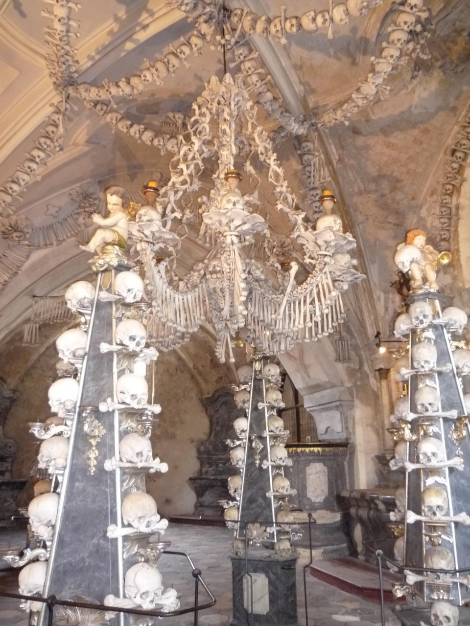 天井のシャンデリアは体の全ての部分を使った人骨で出来ているそうです。