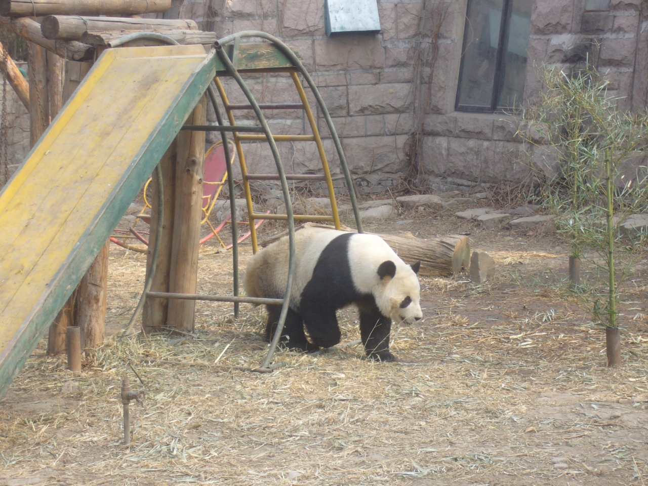 パンダの展示方法ですが、日本の上野動物園などと比べると、自由にパンダが動き回っているな、という印象を受けました。