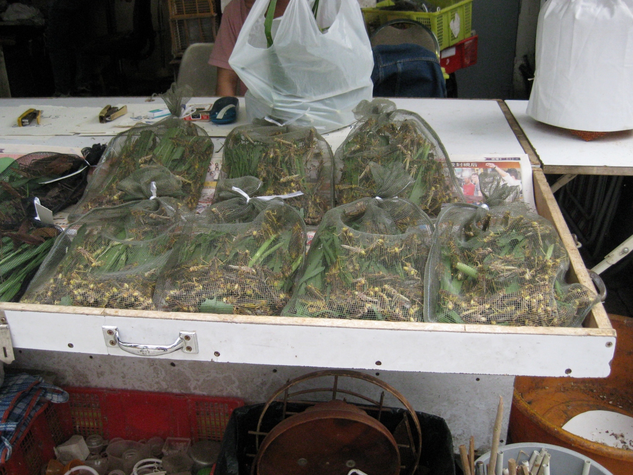 エサのいなご?のような昆虫が網にぎっしり売られていて近寄ったら生きて動いていてびっくりしました。