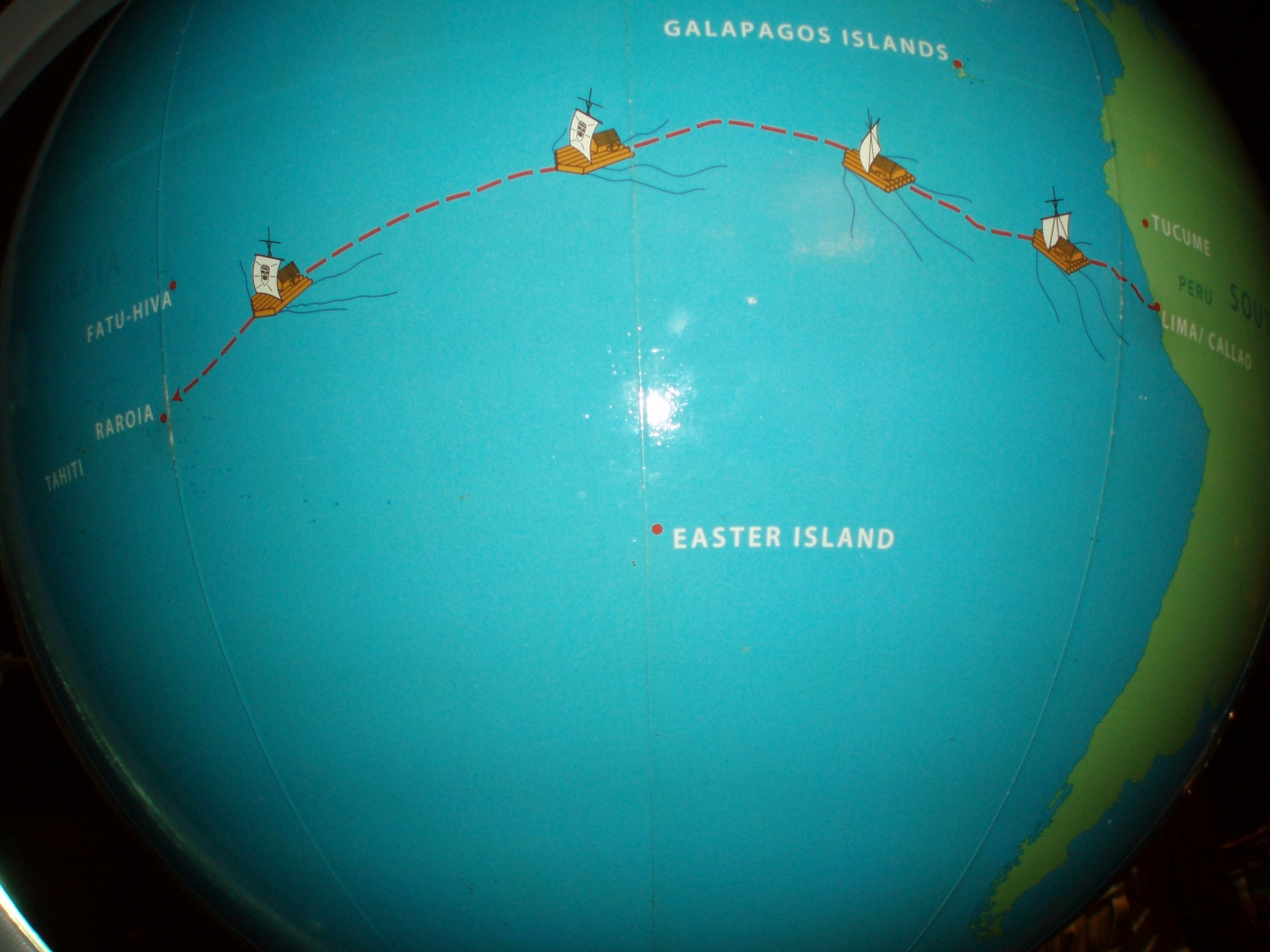 その筏船・コンチキ号、ペルーからイースター島に本当にこれで101日間かけて渡ったのかとまさに彼は冒険者だったんですね!