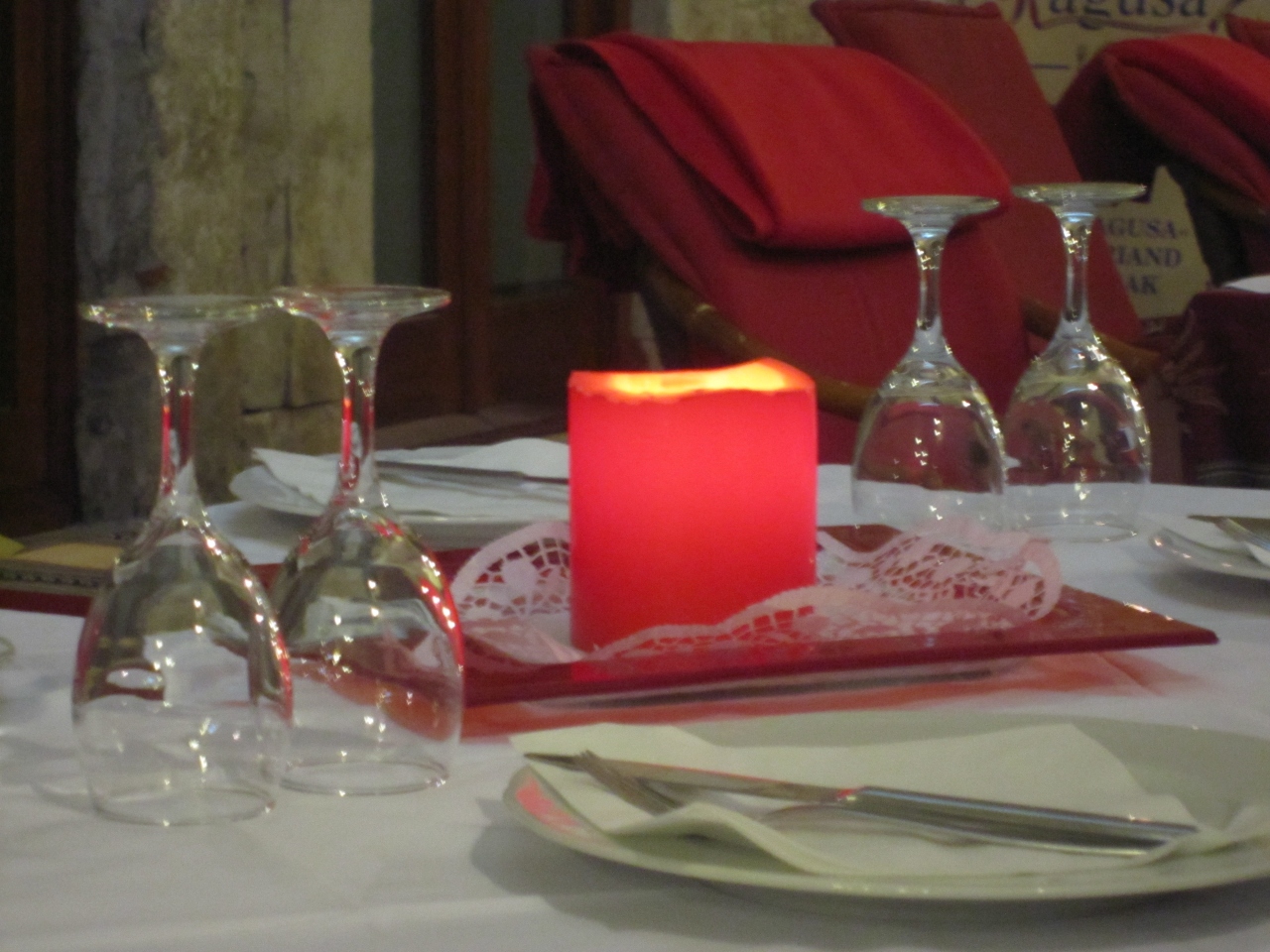 キャンドルと赤のファブリックが可愛いです。