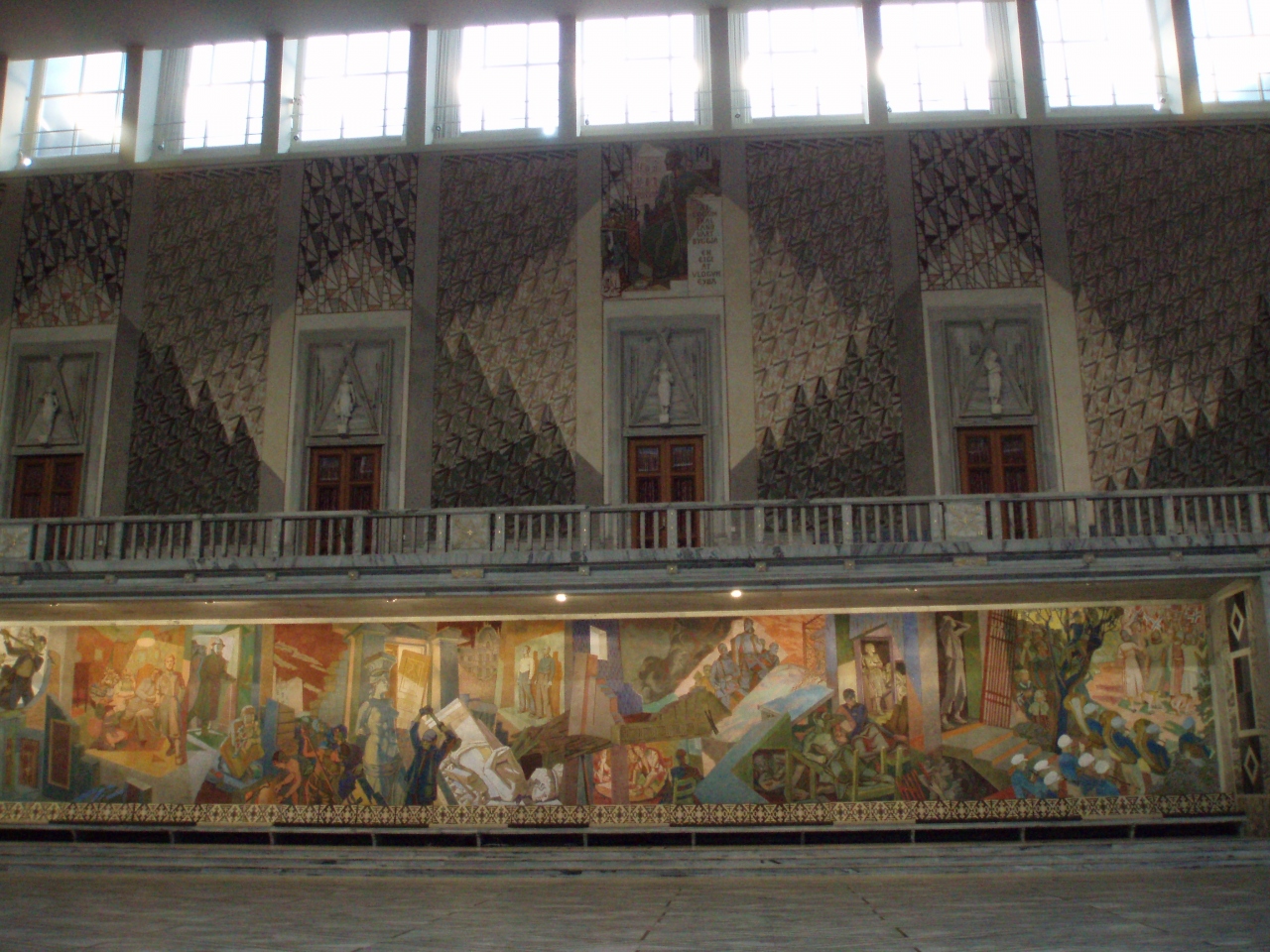 建物の入口から内部へ入ると大きなホールに・・・その周りには巨大な壁画が描かれています。