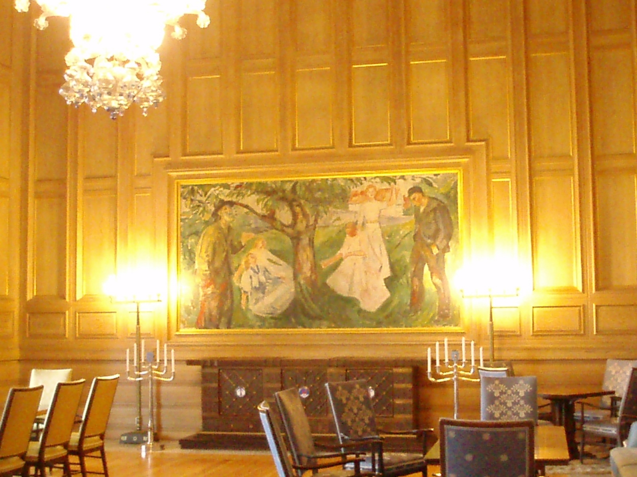 第2次世界大戦時ドイツの占領からの独立をテーマにした作品が多いのですがノルウェー人の文化の営みをテーマに各壁画は壮大なスケールで描かれてます。