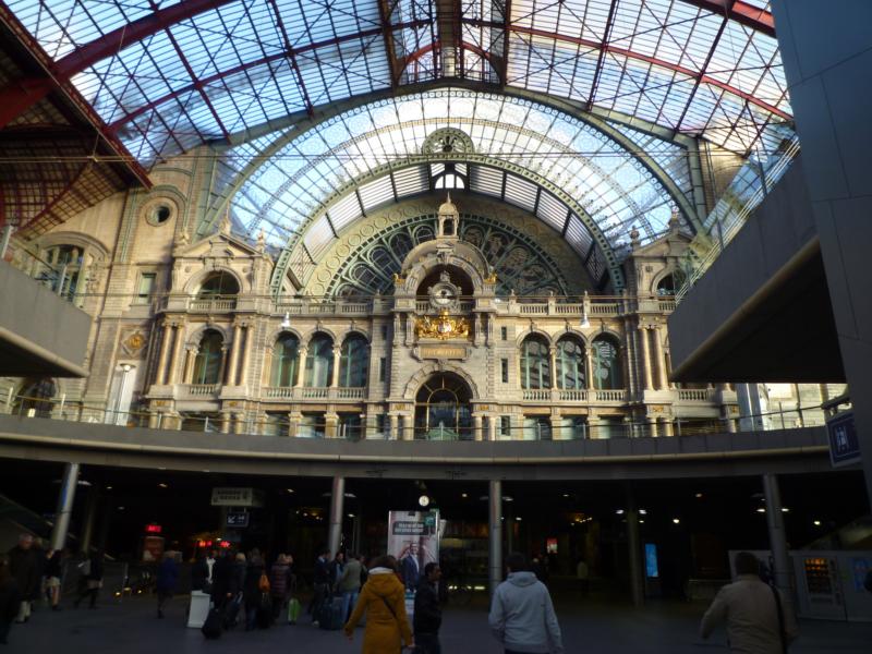 アントワープ中央駅に着いて、エスカレータを上がっているとまず目にするのが駅構内の立派な建築物です。世界の美しい駅の一つということができ、その外観には圧倒されました。おそらく誰もがアントワープには電車を使って到着すると思うので、行きと帰りで二度楽しんでください