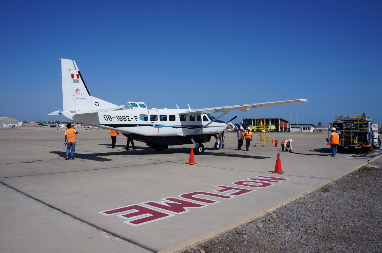 到着したら、セスナ機へ搭乗。ナスカの地上絵を見るために、あちらこちらへ転回の連続、寝不足の体調もかさなり、酔いがひどかったです。