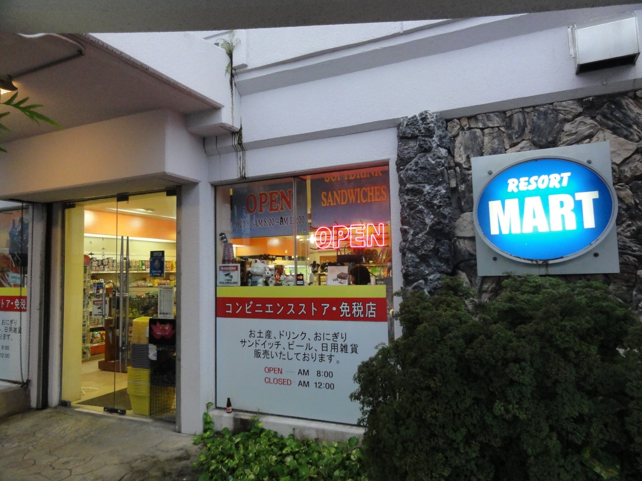 フェスタリゾートホテルの外にある小さなコンビニです。ホテルから出てすぐにあります。古い感じのお店ですが、お土産の民芸品からおにぎりやサンドイッチ等何でもありました。営業時間も朝8時から深夜零時迄なので宿泊者にとっては便利な存在です。