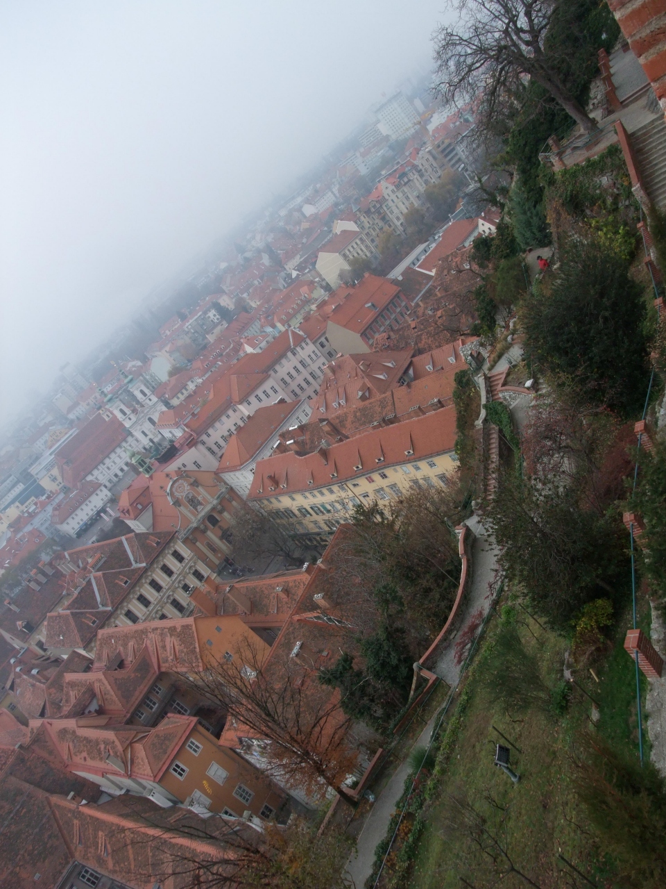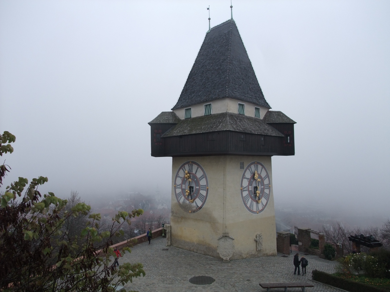 朝からシュロスベルクを見上げても霧で見えず。時間をおいて午後から上ってみましたが、やっぱり何も見えず(T_T)