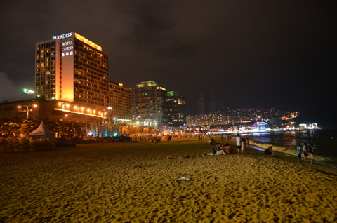 釜山の市内繁華街から地下鉄に乗ってすぐの場所に、釜山のビーチリゾートの海雲台ビーチがあります。海岸沿いには高級ホテルが建ち並び、韓国版ホノルルビーチと言った感じで、私は昼間時間がなくて夜歩いたのですが、おしゃれなレストランやカフェも並んでいて夜景もきれいで賑わっていました。