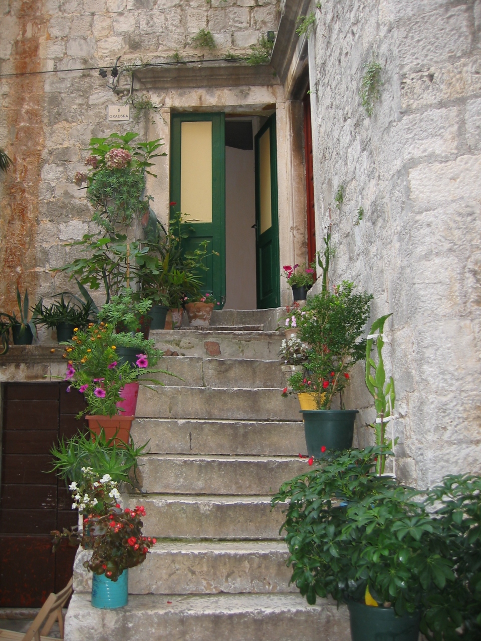 トロギールのバス停を降りると海産物を売る露店が沢山出ていて朝早くから賑やかでした。旧市街には歴史的建造物が数多く残されています。