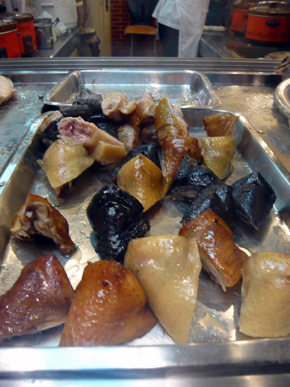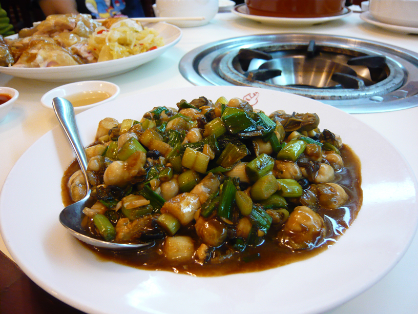 まず何といっても外せないのが三味鶏(モモ、ムネ、烏骨鶏)、そして鶏家豆腐(鶏挽肉入りの辛くない麻婆豆腐)、そして鶏飯(鶏ガラスープで炊いたご飯)あたりでしょうか。鶏肉好きはこの辺で幸せになってきます。鶏料理以外にもカキの炒め物やスープ類、デザートの卵たっぷりなプリンもおススメです。