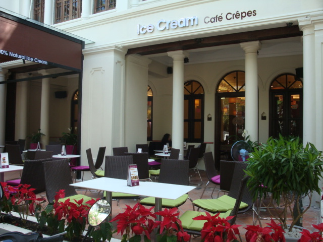 街の喧騒と熱気から離れて休憩できる室内は、冷房が効いていて、ひと息つくにはぴったりのカフェです。