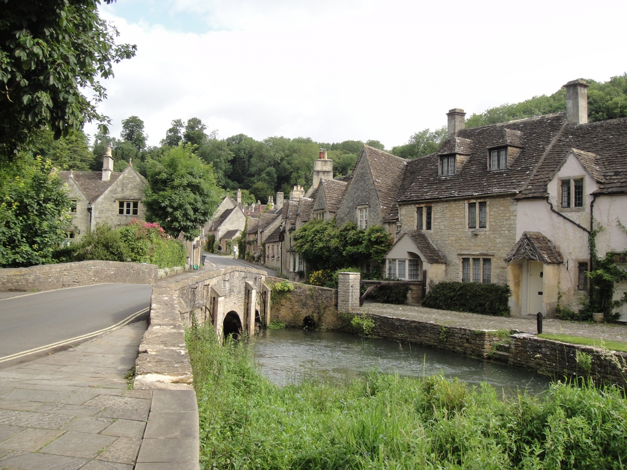 コッツウォルズの南側にある小さな村です。アクセスが悪いのでバースからのツアーを利用して行きました。村の中心にはマーケット・クロスとよばれるモニュメントがあり、そのそばにはセント・アンドリュー教会が建っています。教会の中は自由に見学ができます。中には、1270年に亡くなったカッスルクームの男爵、Sir Walter de Dunstanvilleという人物の墓があります。坂を下っていくと、15世紀からあるというライムストーンの家々が並んでいます。坂を下り切って橋を渡った先には、もうゆたかな緑の森が広がっています。とても小さな村ですが、古い建物がそのまま残され、自然と調和したすてきな村でした。
