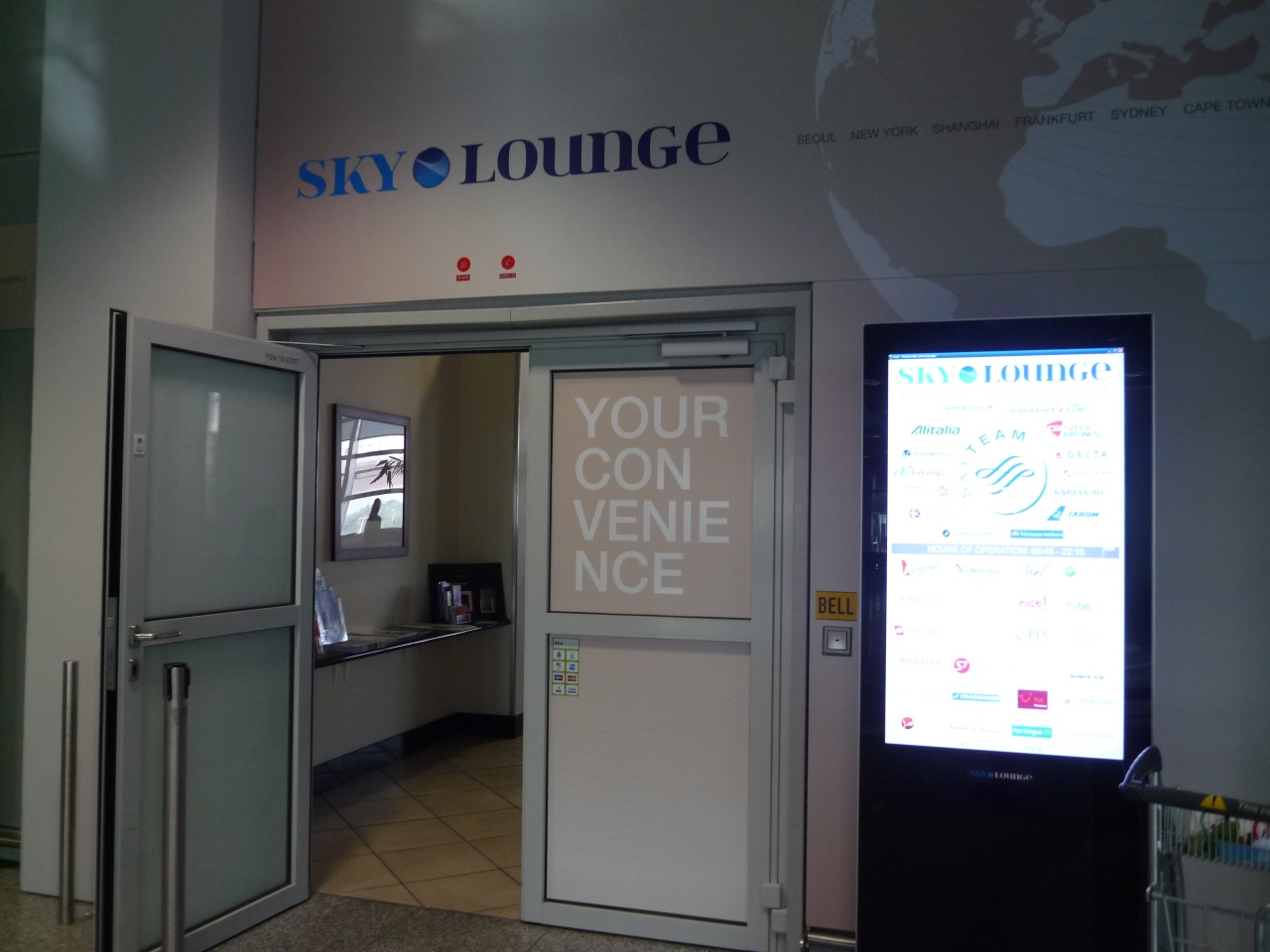 入り口のドアがあまりに粗末(笑)で本当にラウンジ??とびっくりしましたが、中は普通に(?)ラウンジで安心しました。