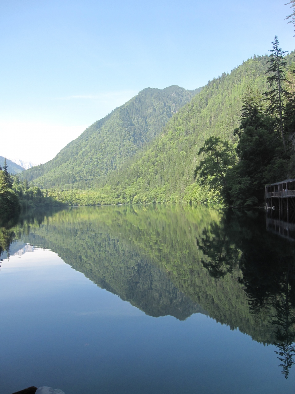 ここも広い湖に鏡のようにくっきり山々が写ってキレイでした。