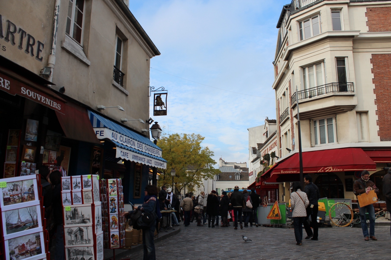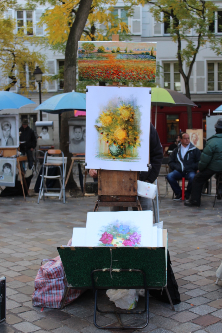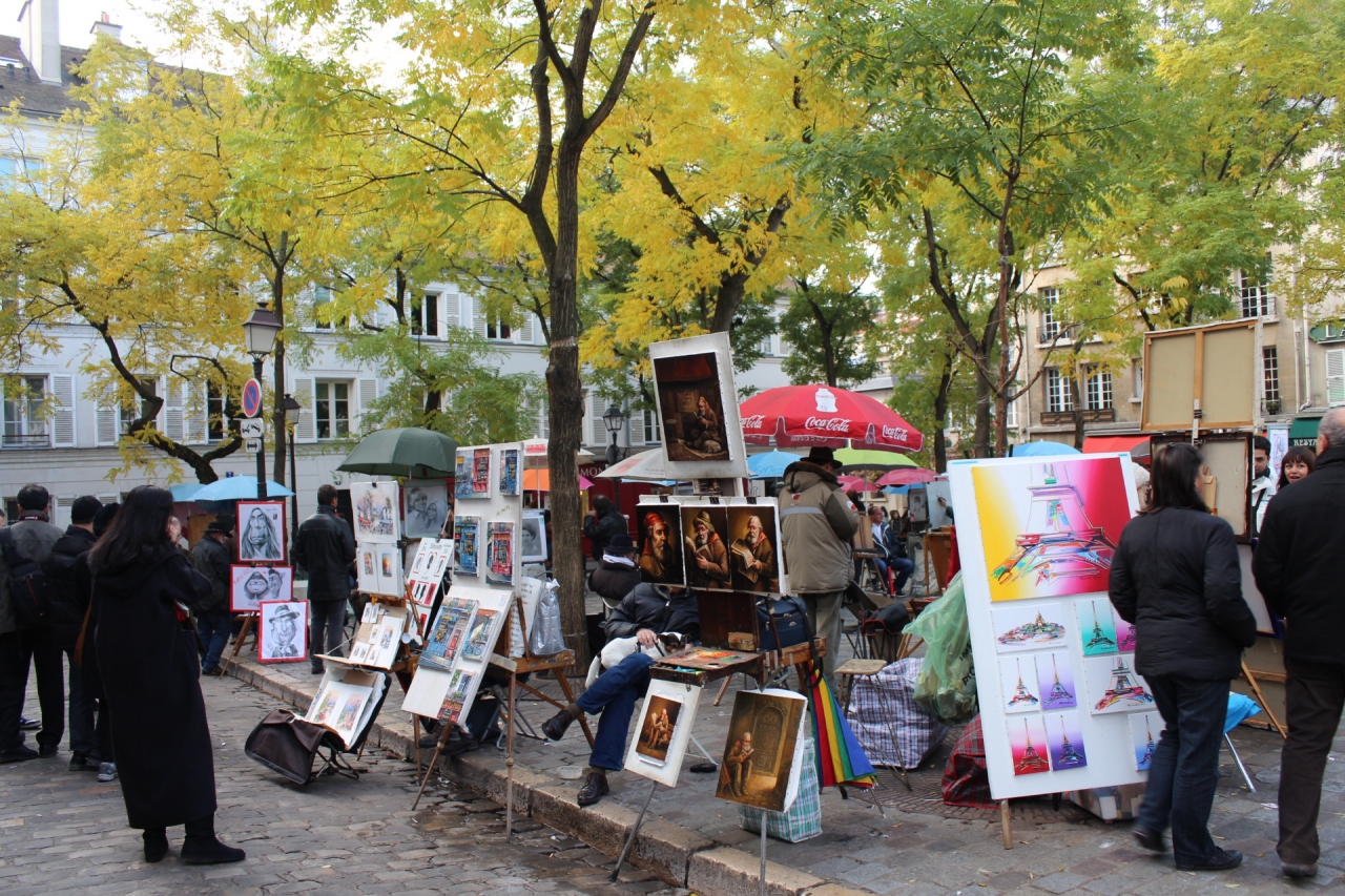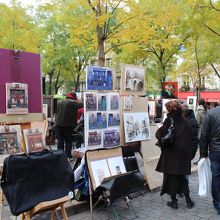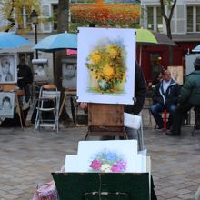 モンマルトル丘のサクレ・クール寺院訪問した際に寄ってみました。寺院から約3分ほどで広場へ到着。石畳の道路を進み到着した広場には、昔ながらのカフェやレストラン、土産物屋がずらりと並び、広場や路上で肖像画家や風景画家が絵を描きながら自分の作品を路上で売っていました。絵を眺めながら散歩している人や、数分で自画像を描いてもらうカップル等でにぎわってました。ゴッホもここで若かりし頃書いていたのかな?なんて思いながら散歩するのも良いかなと思います♪私の思うパリの街の風景という感じの場所でとても楽しかったです♪ 最後はカフェでコーヒー飲みながらその風景を楽しみました。(●´ω`●)