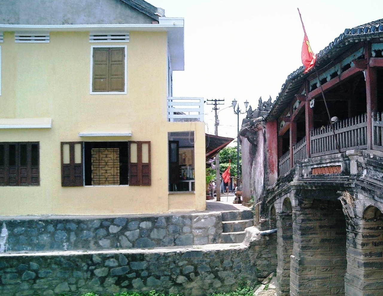 街並み自体が世界遺産に登録されたいて、とても風情のあるたたずまいの街並みです。その遺産の中の1つが日本橋。日本人街と川を隔てた中国人街との間に、日本の商人が橋を架けたので日本橋と名付けられています。アーチ形をしていて、屋根が中国風。かなり年季のはいっている木板製の床で、そばにみると正直老朽化を感じます。