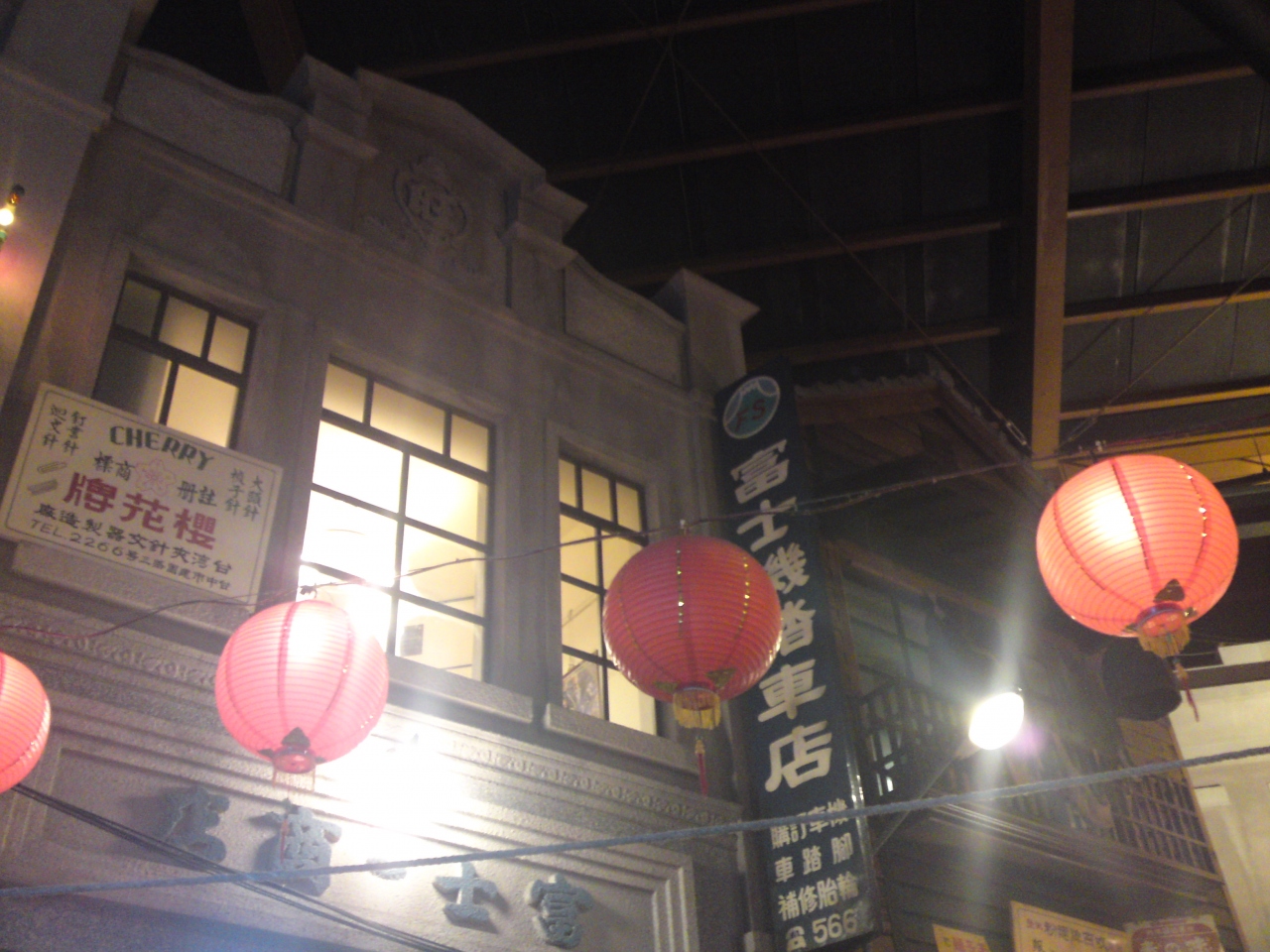 電車の中を見学し、館内へ入ると、40年前の台湾の町並みが再現されています。