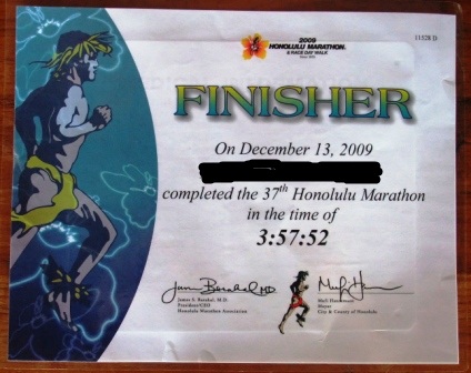 2008年に続き2009年も走りました。タイムは4時間以内でした。ホノルルマラソンはランナーがレースを放棄しない限りエンドレスなので、完走率が高く安心して参加できます。スタートは朝5時と早いのがクセモノです。