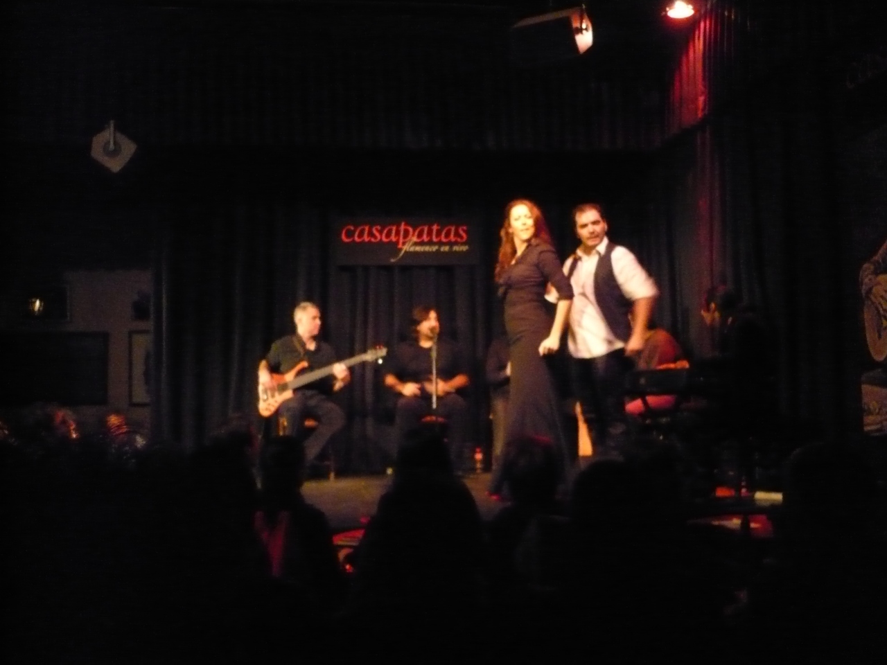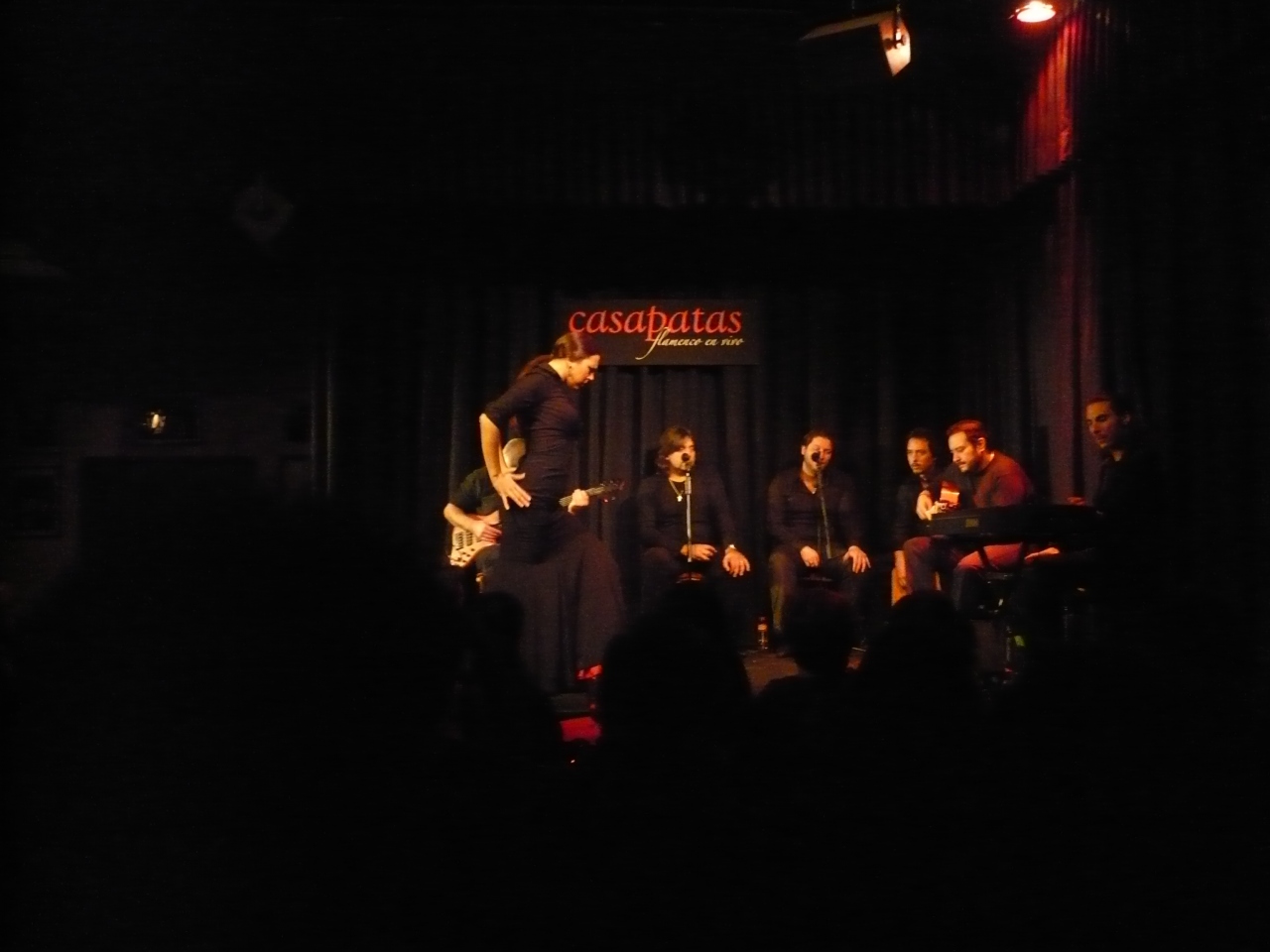 スペインで、グラナダのロスタラントス、マドリッドでチニータス、カサパタス、カルダモモの3か所に行きましたが、ここでのフラメンコは王立音楽院近くの影響か(?)一番の繁華街にあるためか、エレキベース、電子ピアノが入り、この人はジャズマン(?)と思われる人もセッションに入っており、ちょっと現代風フラメンコ。