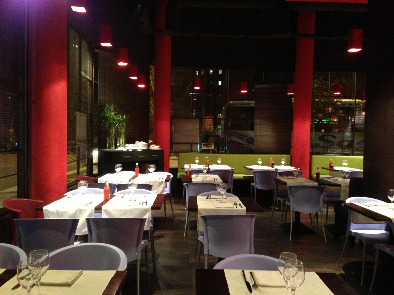 店内は赤い柱と黒い壁?に色分けされた簡易テーブルとイスが並べられているシンプルな作りの中華レストランでした。入ってすぐ寿司のカウンターが目に入りました、魚も並べられてありました。今回は中華メニューでしたのでお寿司は食べておりません。