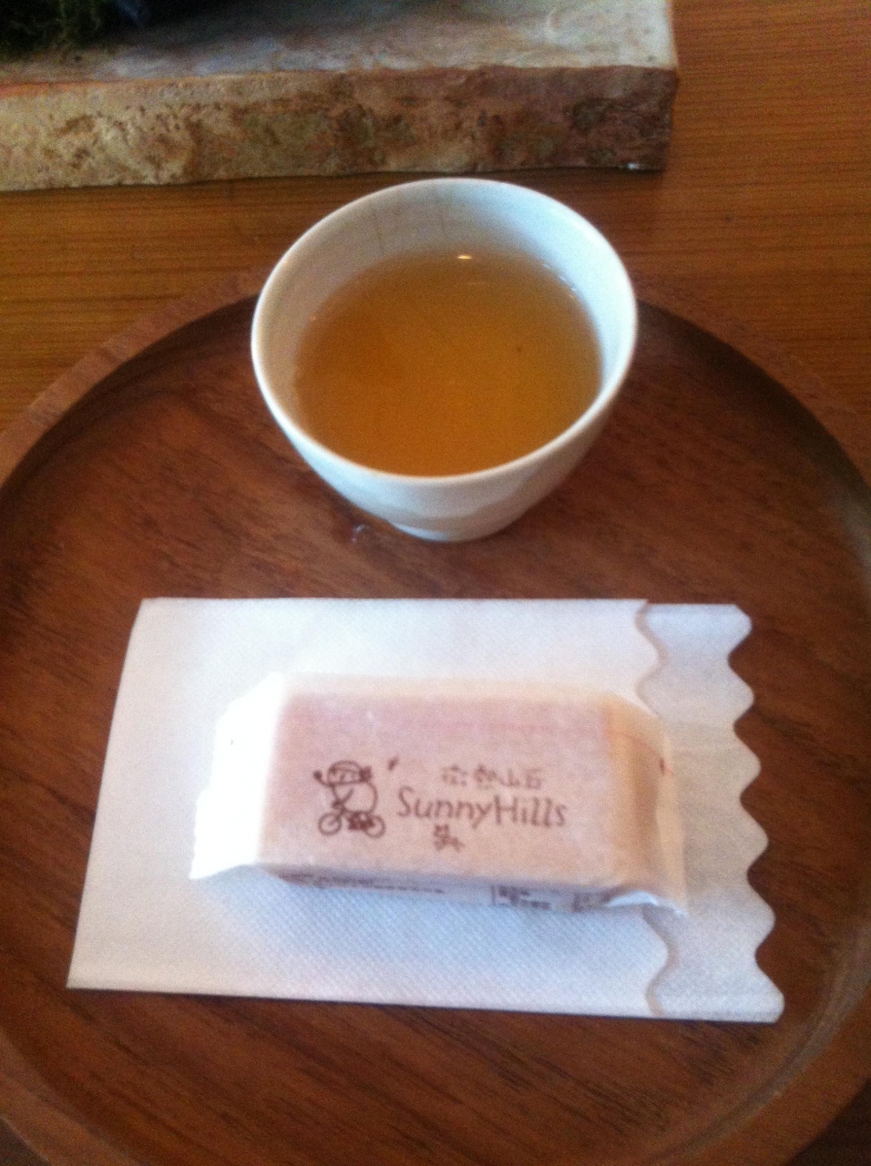 台湾といえばパイナップルケーキ。こちらはおしゃれケーキです。お店の場所は松山空港から1キロちょっとですので、例えば帰国便を早めにチェックインしてから、とか荷物が少ないときの到着直後の立ち寄りがよいのではないでしょうか。シンプルなインテリアが配されるお店で、到着するとお茶と試食(まるまる1個)ができます。その後お買い物となります。商品は箱も、箱を入れるバッグも可愛いので、バッグごとおみやげにするとよろこばれるのではないでしょうか。値段は安くはないので、バラマキにはお勧めできません。