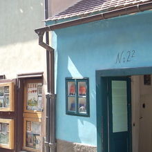 色々なお店や武器の展示などがカラフルで小さな家々に散らばっている長屋みないな不思議な小道です。