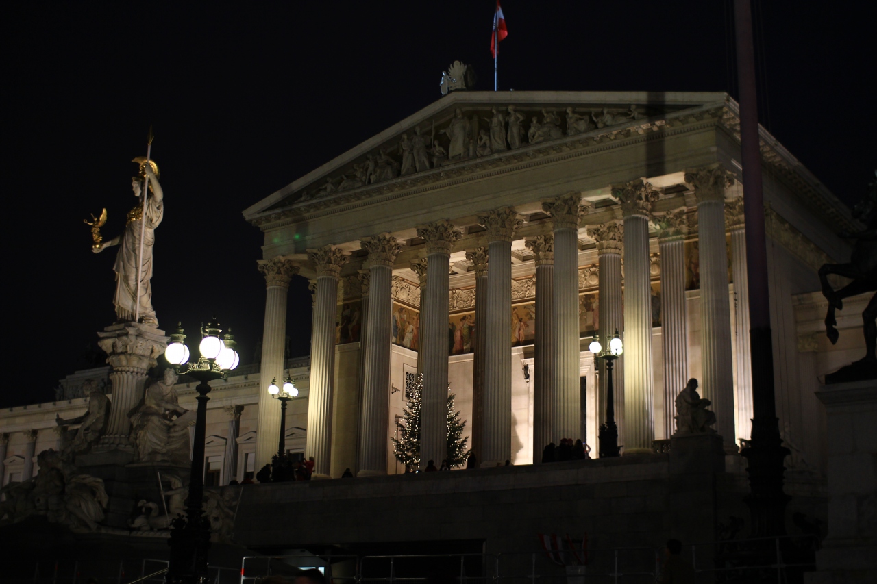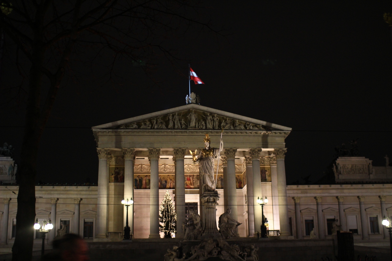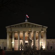 リンク通り沿いにある女神の像とはためくオーストリア国旗が目に入るとそれがオーストリアの国会議事堂です。