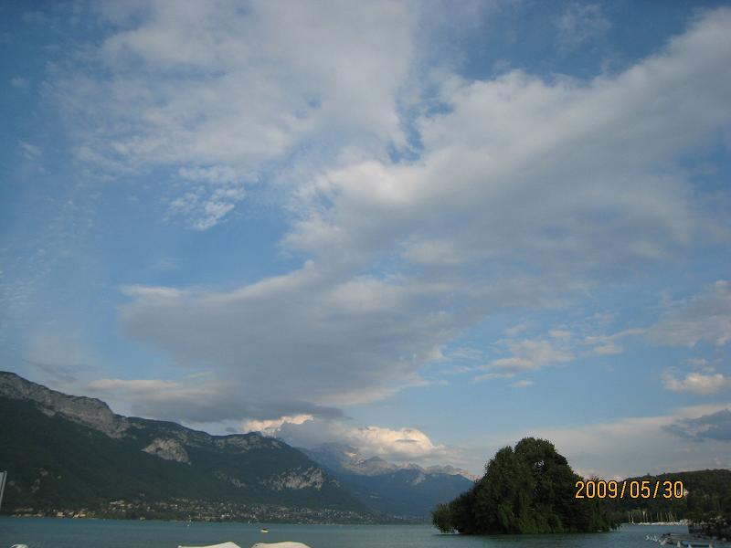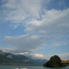 アヌシー湖の近くまで行くと、観光用の小さなクルーズ船が浮かんでいます。