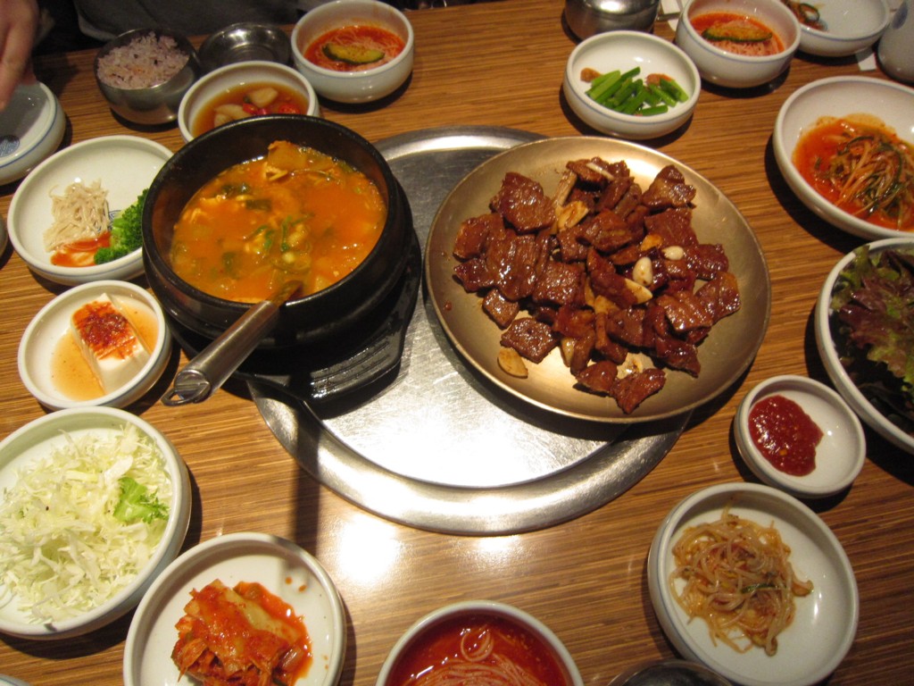 2012/12/4 13:00頃3人で入店。店が2Fなのは知っていたが階段がわからず、思わず道路の反対側から探してしまう(^^;; 店内は空いていて、すぐ席に通された。注文したのはデジカルビ定食3人前とチャミスル1本。最初にすごい量のバンチャンが出され、しばらくして真鍮の皿に乗ったデジカルビ登場。デジカルビは甘い味付けで辛すぎず、おいしかった。バンチャンだけでもお腹いっぱいになるのに、これで33,500Wは安い。手軽に焼肉ランチを食べたい人にお勧め。
