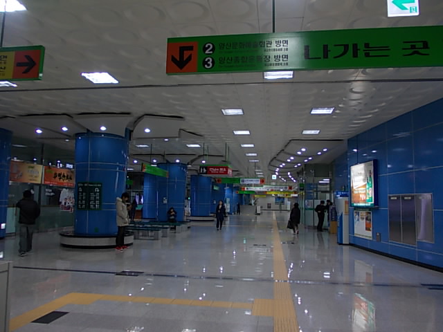 釜山の金海国際空港は、近年軽電鉄と呼ばれる鉄道により地下鉄駅と結ばれてとても便利になりましたが、釜山の地下鉄自体、数年前と比較すると一気に路線が拡張した印象があり、しかも今のところソウルほどはごちゃごちゃしていないので、乗り換えも判り易くて観光客にもお勧めできる乗り物です。私は今回、梁山という郊外の町まで地下鉄でアクセスしてみましたが、こちらもまだ開通して間もないエリアの路線ですので、新しくて乗り心地も良かったです。