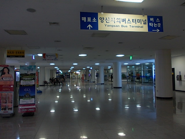 釜山市内には、勿論地下鉄駅も隣接している有名な高速バスターミナルもあるのですが、地下鉄の開通によって、意外とアクセスが便利になった梁山という隣町にある市外バスターミナルの利用価値も高まったように思います。このバスターミナルは地下鉄駅から徒歩5分位の距離ですが、比較的空いていて、ソウルは勿論、意外と韓国各地へ路線が沢山運行されていますので、穴場的な市外バスターミナルだと思いました。