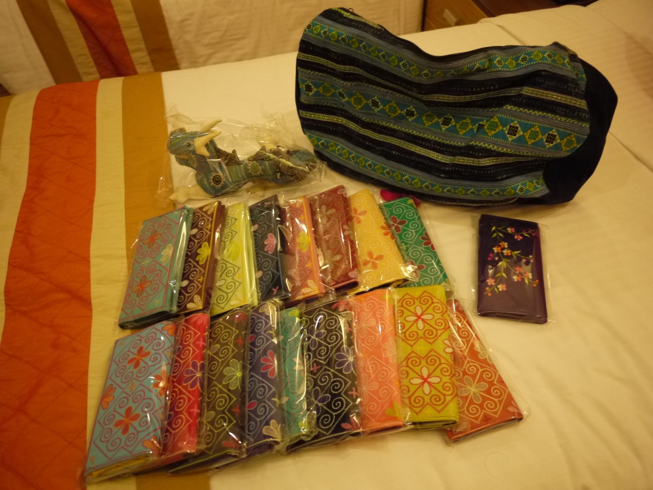 右上の大きな青いバックは$12。このバックは旅の終わりのトランクに入らないお土産を入れるバックとして大活躍しました。
