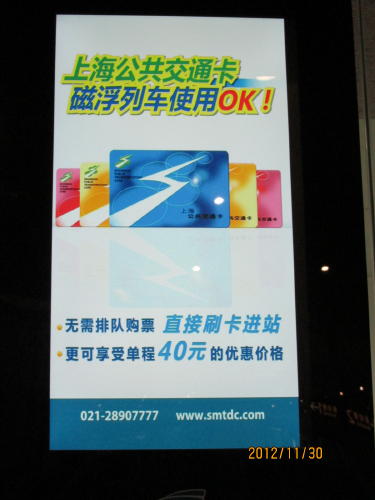龍陽路駅からは、タクシー・バスのほか、地下鉄2号線か7号線に乗り換えることができる。12年11月より交通カードが使えて40元になります。
