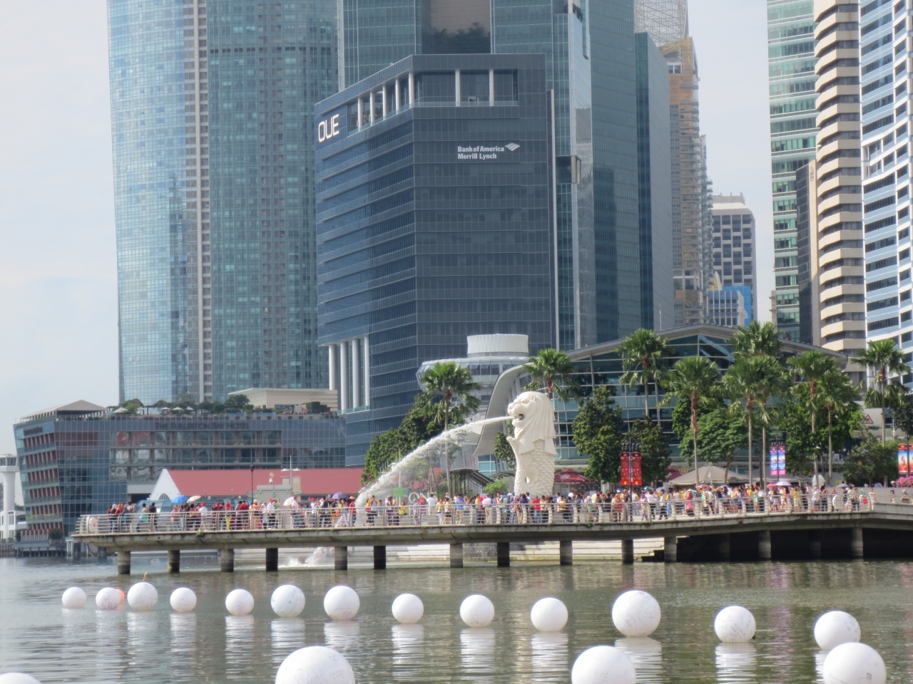 夜も乗ってみようと思い、別の日にクラーク・キー~マーライオンまで乗りました。正面から見るマーライオンも面白いですよ。