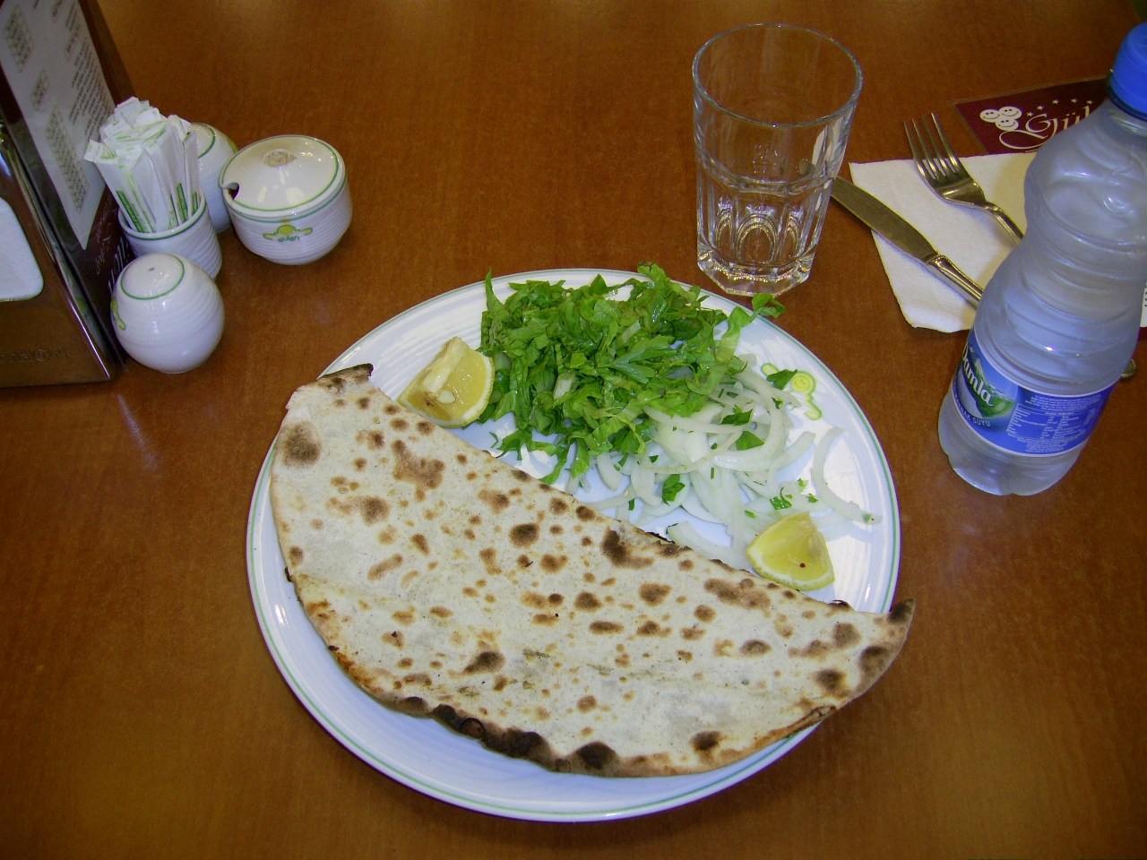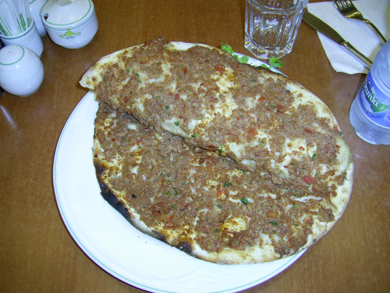 チャナッカレ滞在中にお世話になったレストランです。薄い皮のパン生地に羊肉のひき肉を載せてからかまどで焼く料理、ラフマジュンを頂きました。癖がなかったので美味しく頂きました。