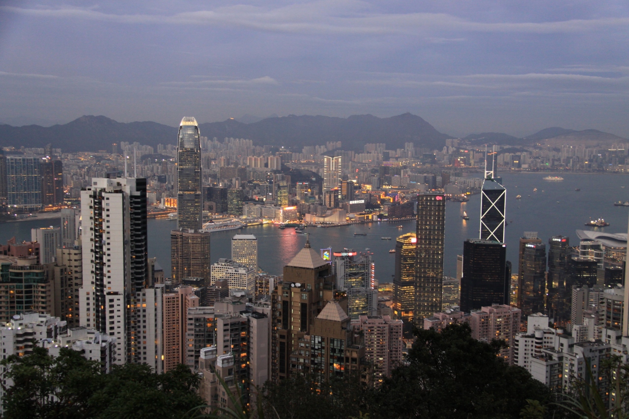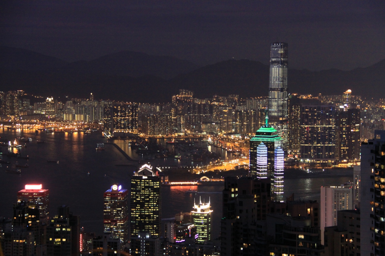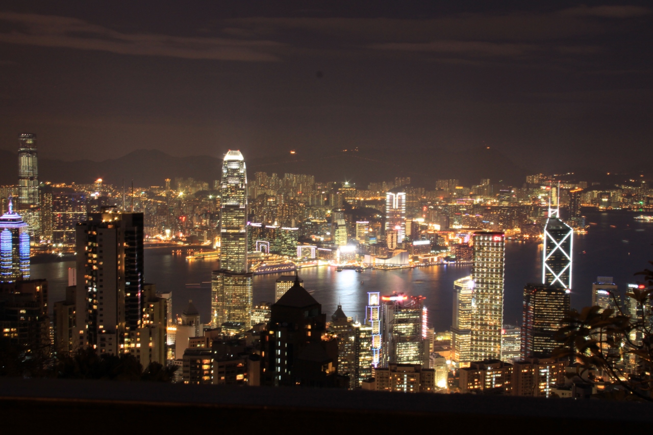 夜景はピーク・タワーの展望台(有料)や獅子亭(無料)から見る人が多いと思いますが、山頂には遊歩道があり、そこからの眺めも素晴らしかったです。何より人が少ないので写真がゆっくり撮れました。