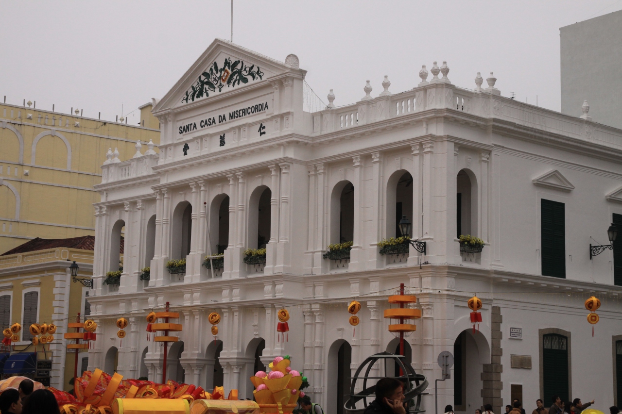 広場周辺はモザイクタイルが敷き詰められ、ピンクやイエローのコロニアル調の建物がならぶ、マカオの「エキゾチックな部分」を感じられる場所です。ここではマクドナルドもスターバックスもお粥屋さんもコロニアル調の建物の中に同化していました。