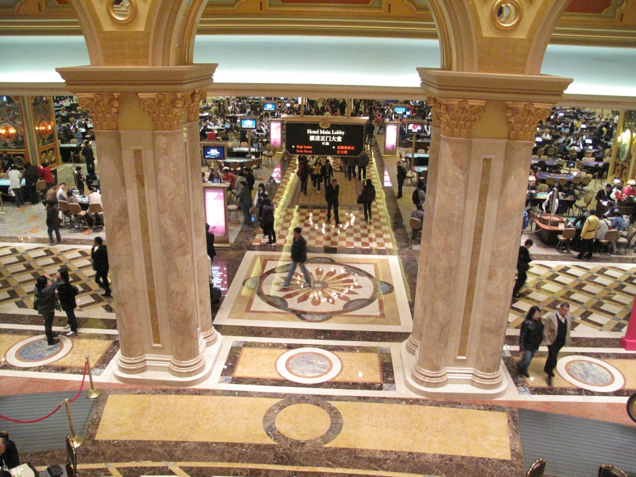 テーマパークのようなホテルの一角にあるカジノは想像以上に大きくゴージャスなつくり。館内の照明が明るいのも意外でした。また、かなりの人がゲームに参加していて熱気のすごさにも圧倒されました。ほとんどが中国からの観光客だそうです。
