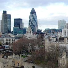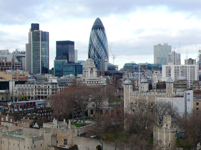 タワーブリッジからロンドンの街を眺めました。ひときわ目立つのが不思議な形をした近代的な高層ビル。これが、30セントメリーアクスと呼ばれる高層ビル群の中にあるガーキンという40階建てのビル。ロンドンの景観にあっているかどうかはわかりませんが、目立っていることは間違いない。ただのオフィスビルで中には入れません。