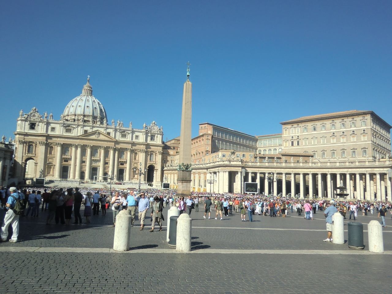 サンピエトロ広場は2回目ですが、たまたま法王がおられました。広場には自由に入れた記憶があったのですが、入門ゲートがあって金属検査を受けました。人ごみはすごいです。場所は人ごみについていけばいいので、迷わずに行けます。周辺の景観が非常にきれかったです。ローマ滞在でしたが、ここらへんのホテルに泊まった方が治安がよさそうでした。