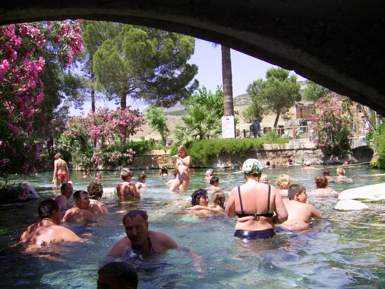 パムッカレの石灰棚を登った所に、温泉がありました。水着着用で入れるプールみたいな感じでした。ぬるま湯でゆっくりつかりながら旅の疲れをとることができました。