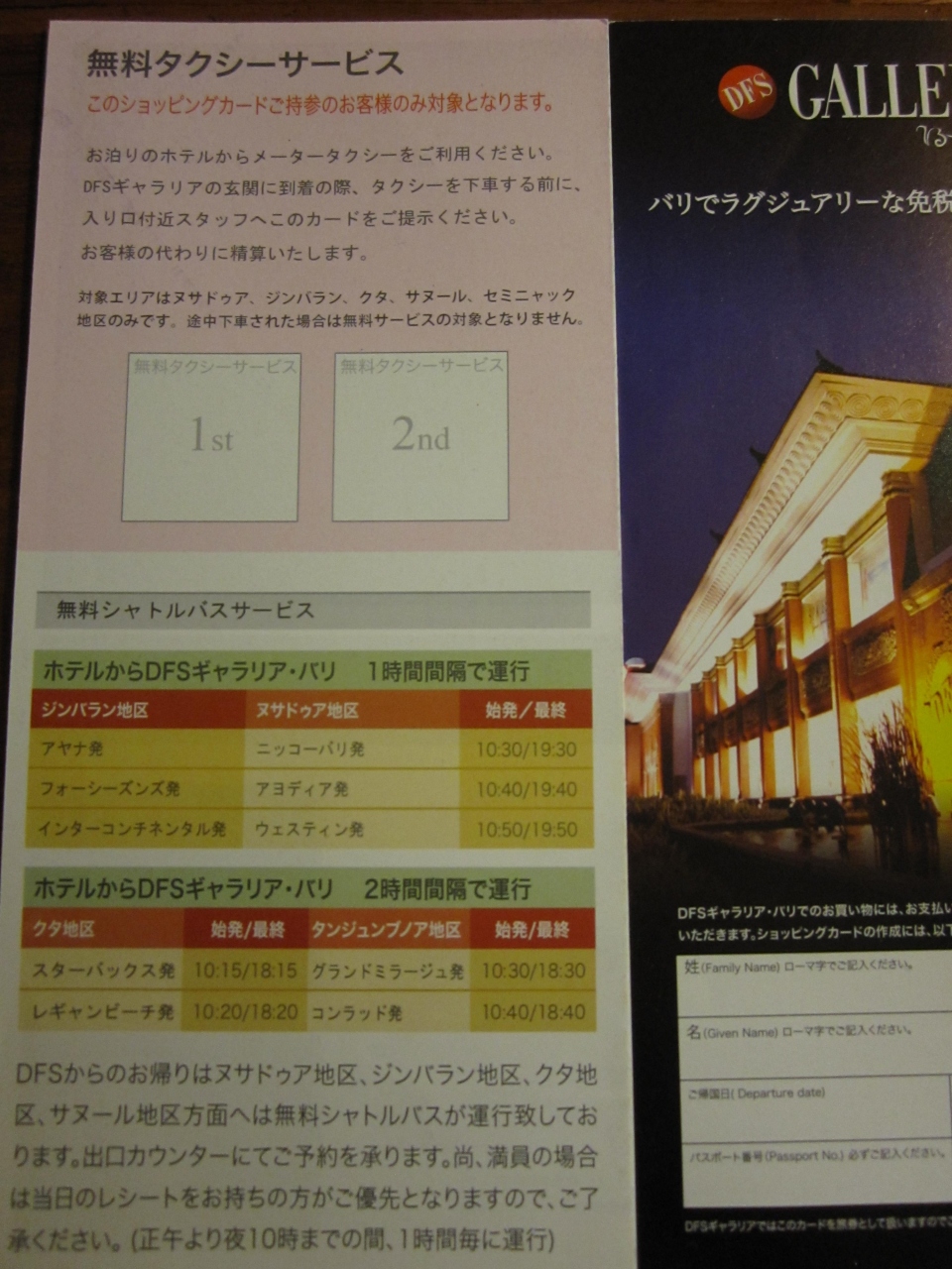 初めてのバリは199X?その当時はDFSでショッピングしたレシートを