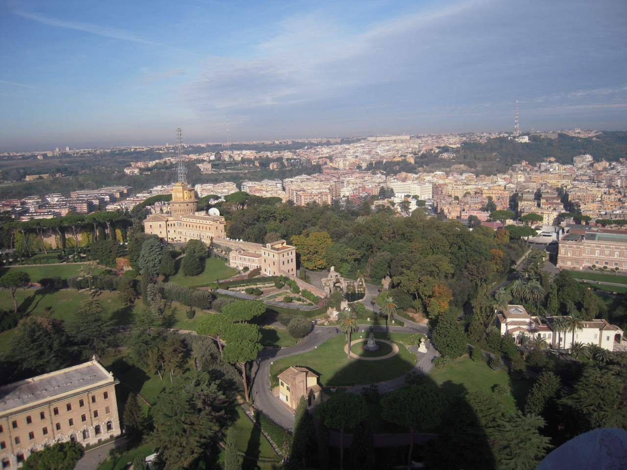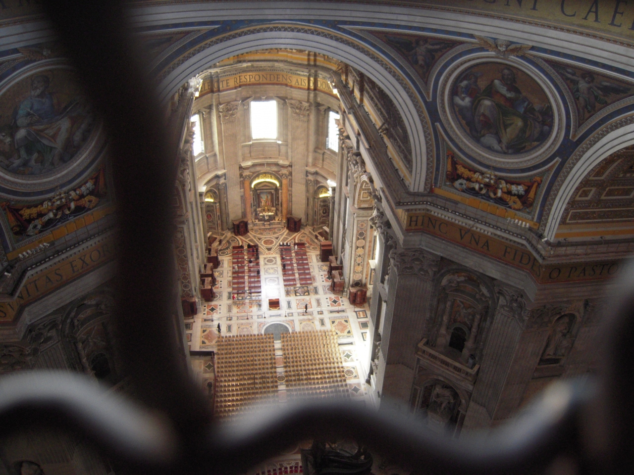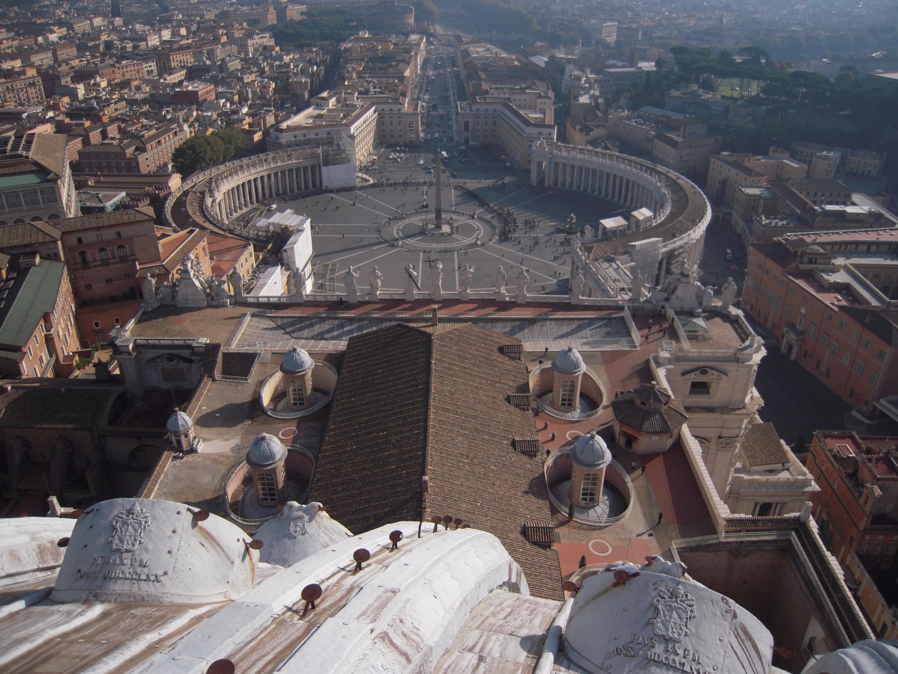 サンピエトロ大聖堂の右横からエレベーターで上がり、そこから細い階段を歩いてクーポラに昇る。