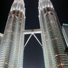 クアラルンプールのシンボル、ペトロナスツインタワーは夜になると一層美しさを増します。間近まで近寄って見上げると、とても幻想的に光っています。すぐ前が公園になっているため、夜でもたくさんの人がタワーを見上げていました。