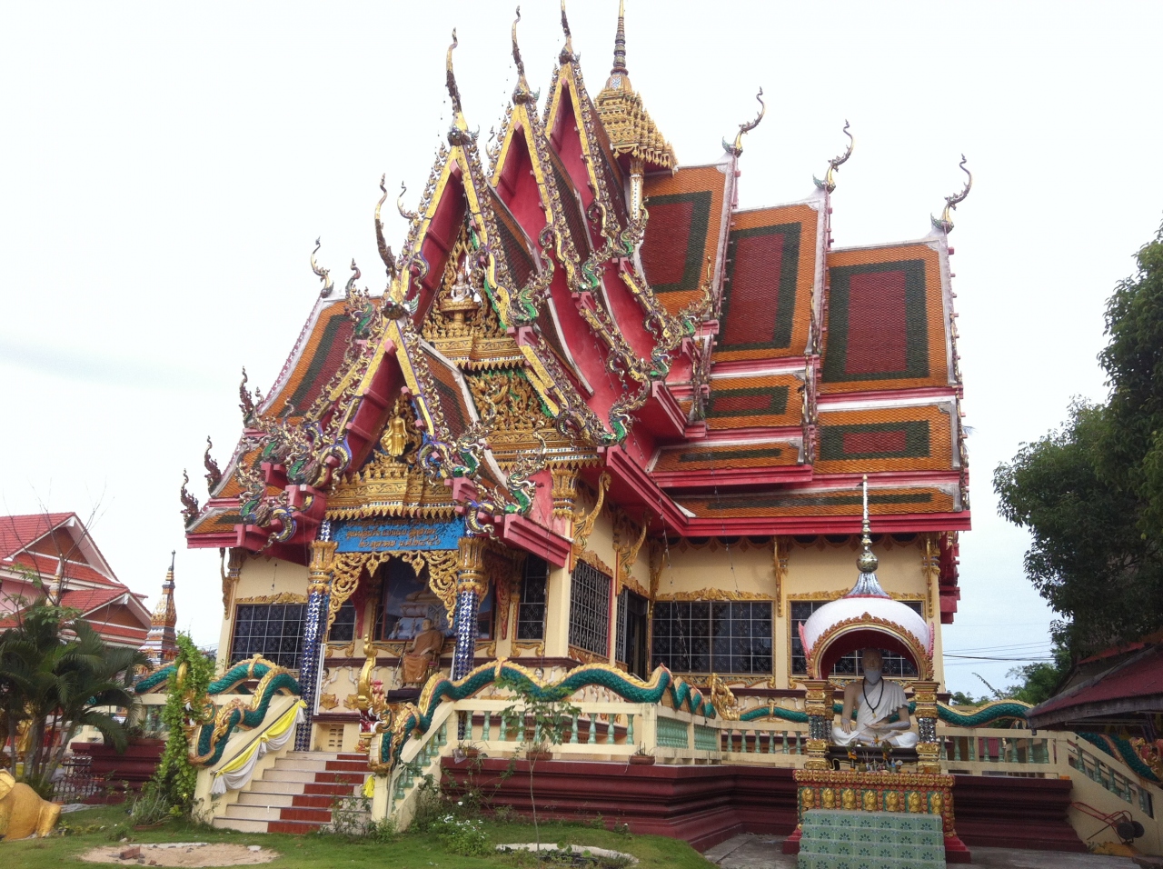 スクーターをレンタルして行ってきました。寺院にはいると巨大な千手観音や大黒像が目を引きます。中には大きな池があり、その上に浮かぶようにいくつかの建造物があります。特に素晴らしいのは建物の屋根の形がとても印象的でした。