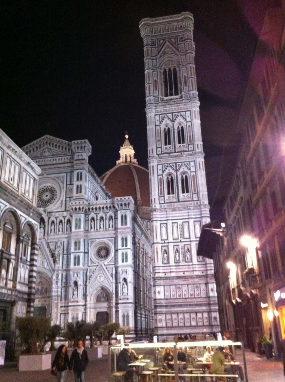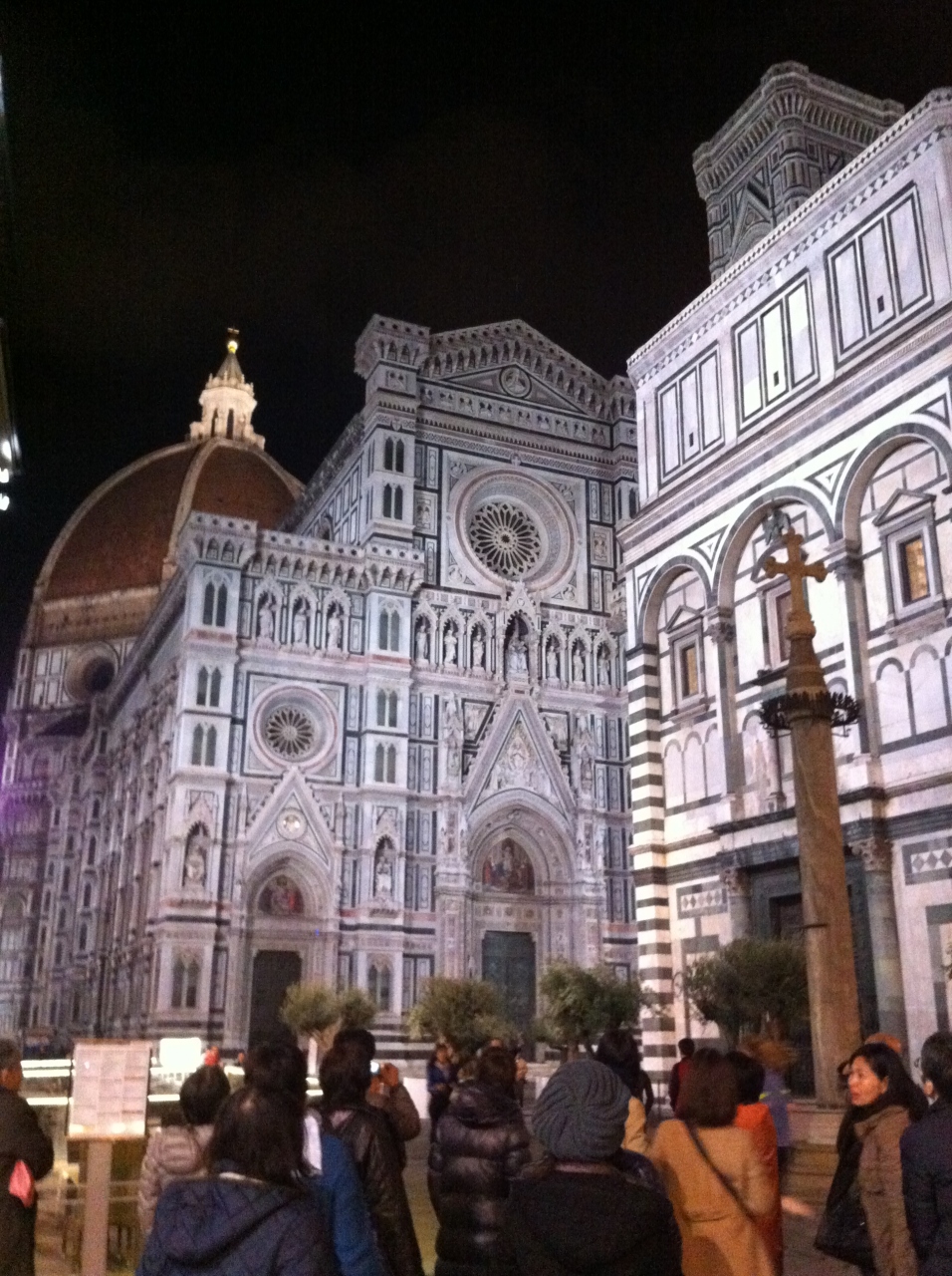フィレンツェは、夜着いて、ライトアップされたドゥオモを見た。