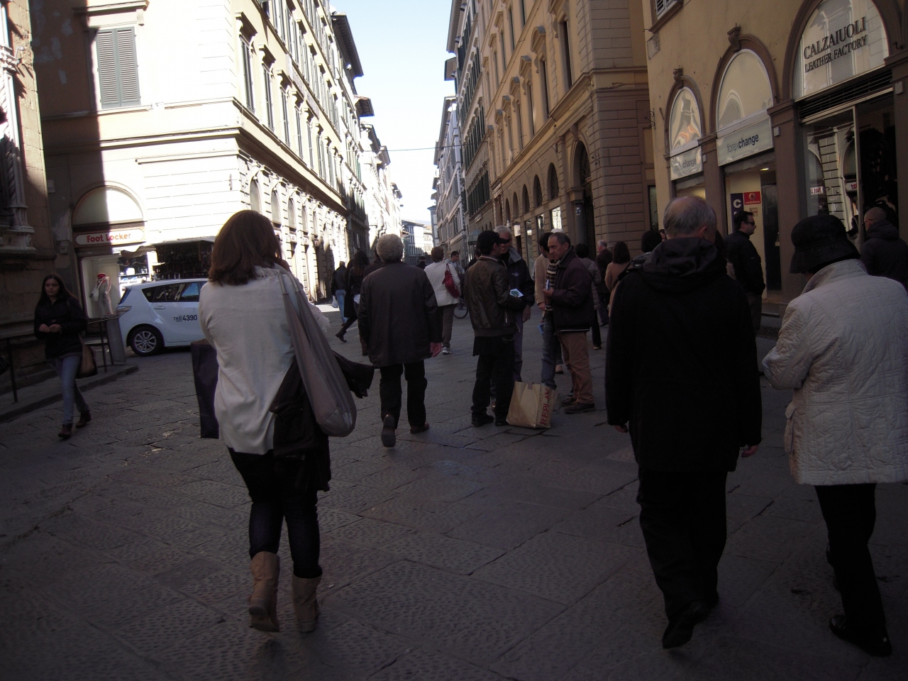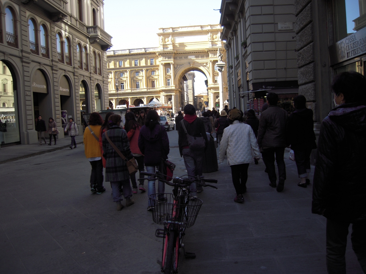 街並みがいいと聞いていたが、ドゥオモとシニョーリ広場の間の狭い路地は、結構魅力的だったが、トルナヴォーニ通りの貴族の館は、よく分からず。淋しい通りだった。ドゥオモからレストランに行く途中にピノキオの店があって、一際目を引いていた。