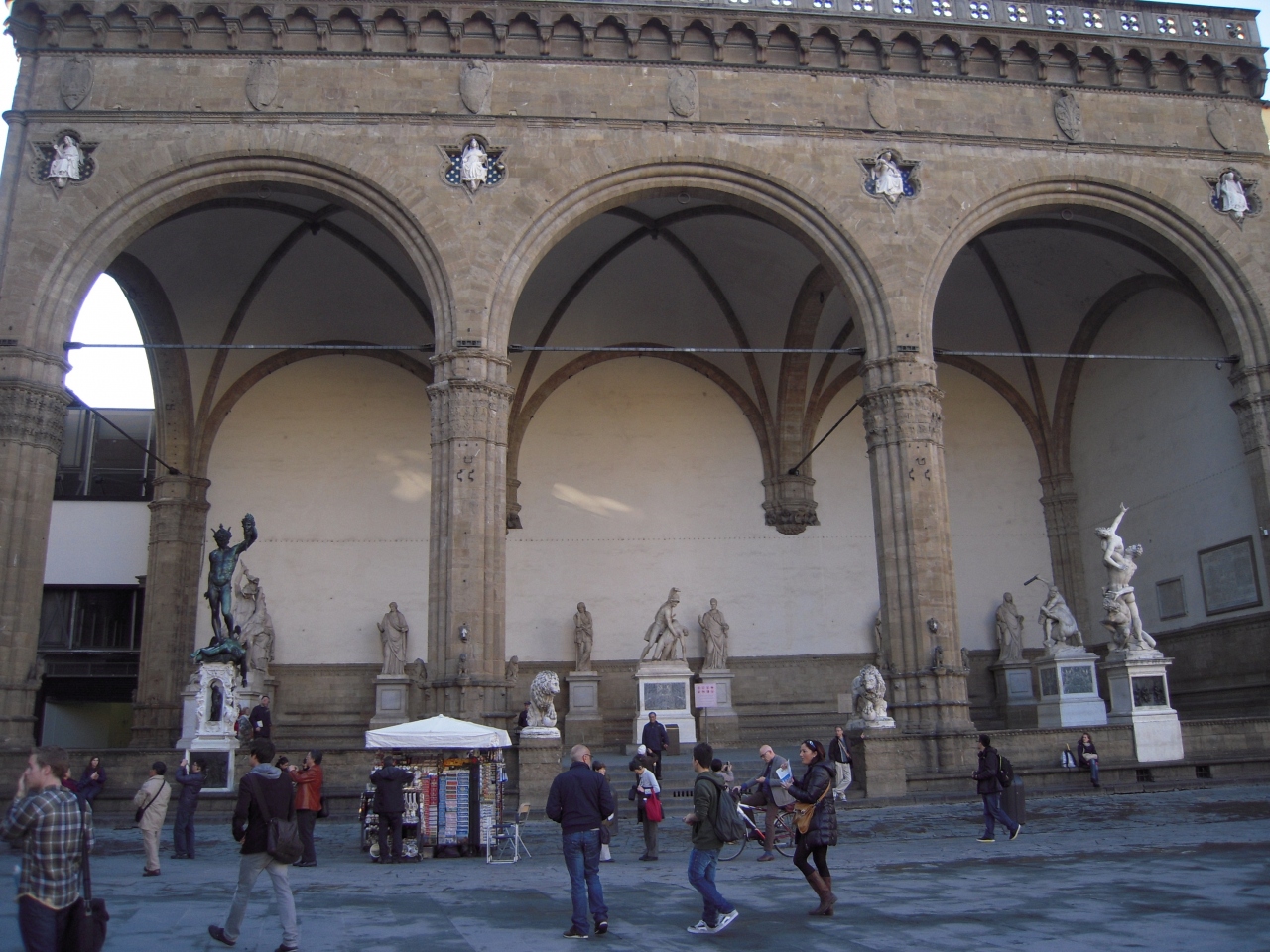 シニョーリ広場にあるランツィのロッジアと言って彫刻がたくさん並んでいた。ダヴィデ像もあった。撮影のようなのも見た。